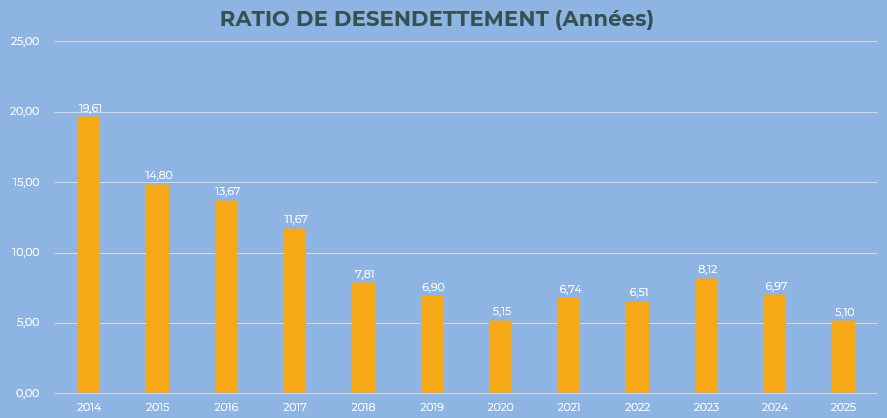 Ratio de désendettement 19,61 années6,97 années5,10 années